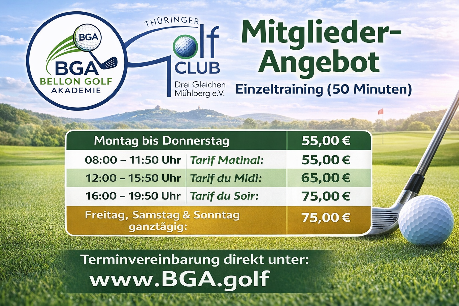 PLAY GOLF, RELAX AND ENJOY YOURSELF IN THÜRINGENGOLFCLUB DREI GLEICHEN MÜHLBERG BEI ERFURT