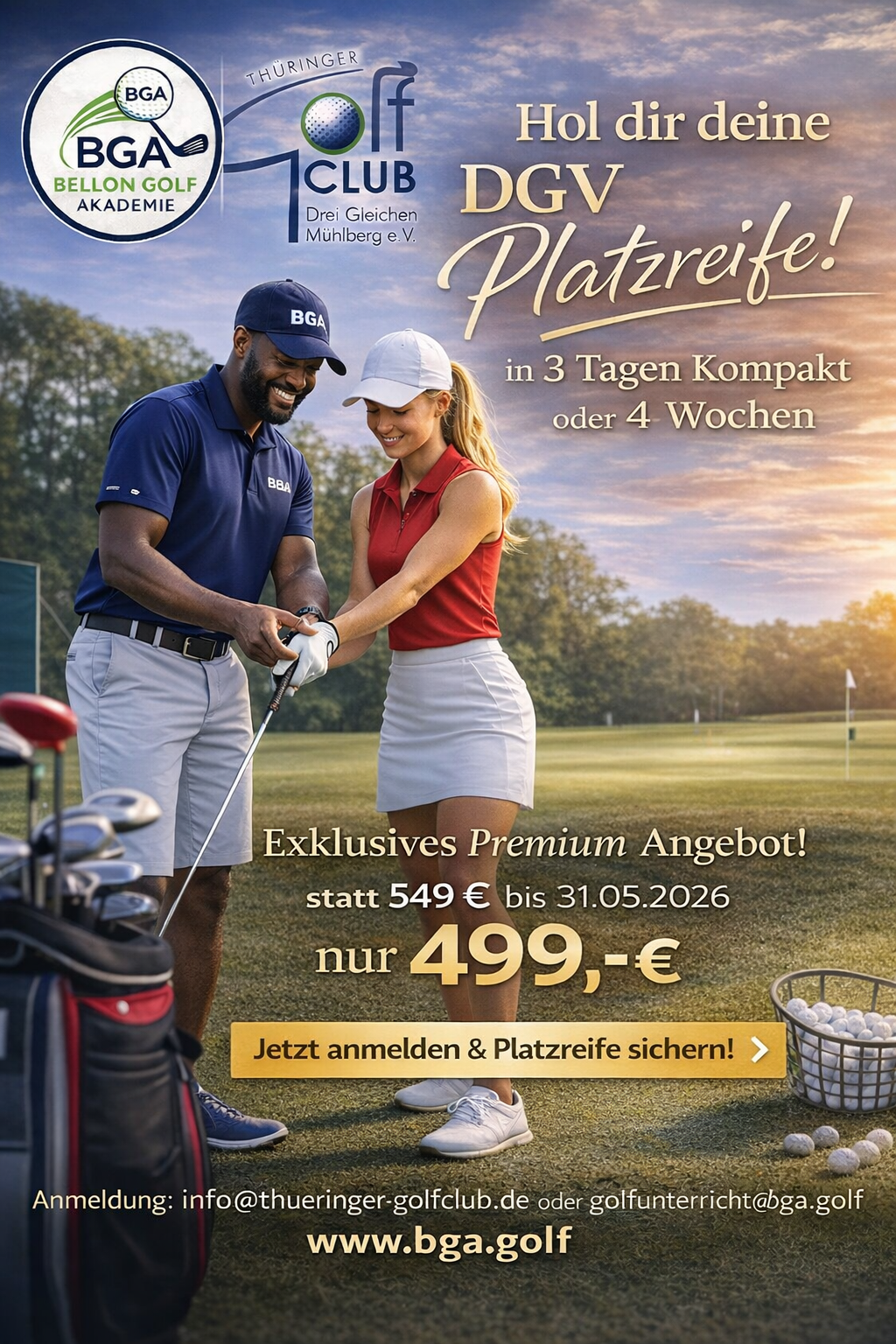 - Persönliche Terminvereinbarung mit Fully Qualified Golf Professional GGTF-Trainer